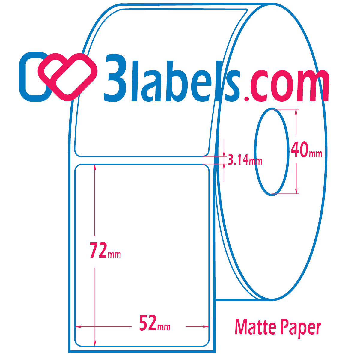 3labels матови бели етикети от премиум хартия за инкджет (inkjet) печат 52х72 мм, 450 бр.